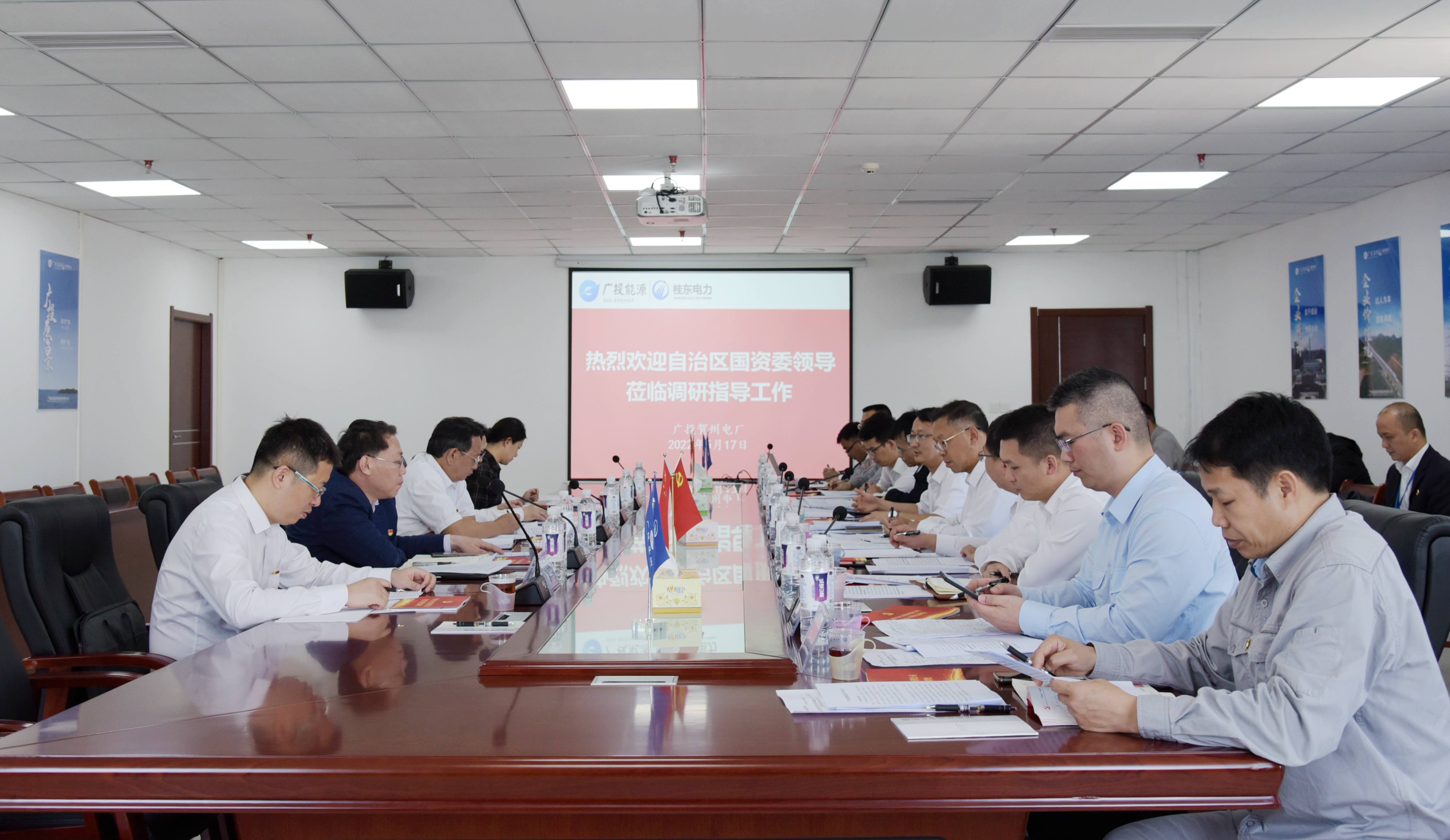 随后,调研组一行在广投贺州电厂二楼会议室召开调研座谈会,广投贺州电厂、桂东电力、广投能源集团和桂东电子等企业有关负责人分别向调研组汇报了企业党建、生产运行等工作情况。