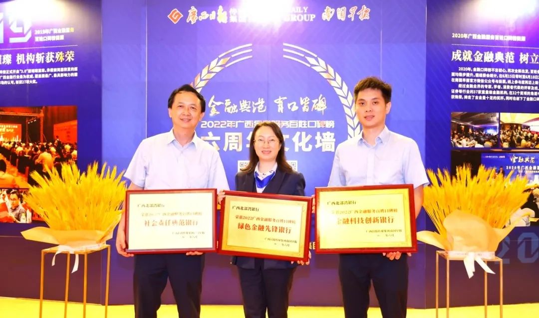 北部湾银行坚持“普惠、智慧、低碳”三轮驱动,切实以金融力量解民生之忧,创社会效益,在服务实体经济、打造优质服务、发展绿色金融等方面精耕细作,2021年累计投放各类资金3000亿元支持广西实体经济,“引金入桂”超1300亿元,充分彰显国有省级商业银行责任担当,在本次评选中摘得“社会责任典范银行”“金融科技创新银行”“绿色金融先锋银行”等3项大奖。