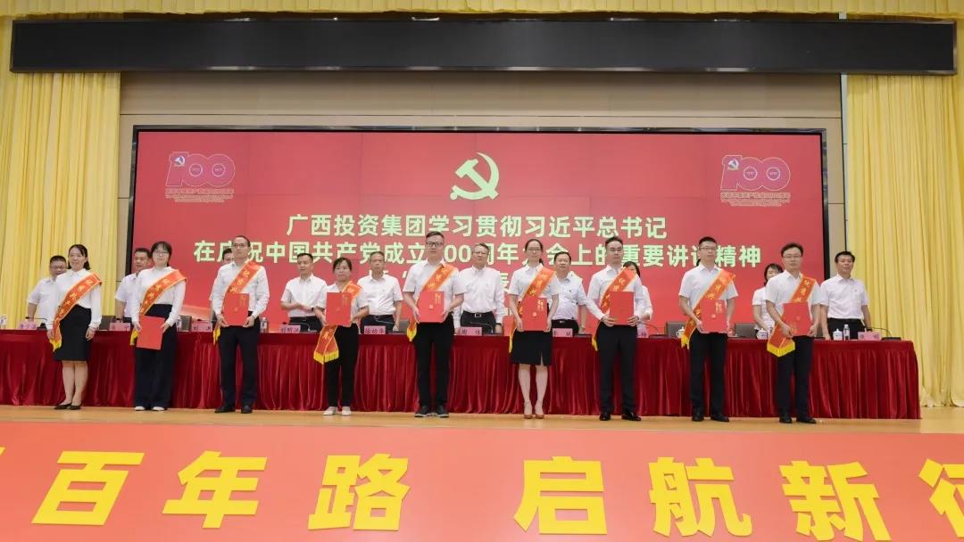 7月6日,集团召开学习贯彻习近平总书记在庆祝中国共产党成立100周年大会上的重要讲话精神暨“七一”表彰大会,深入学习贯彻习近平总书记在庆祝中国共产党成立100周年大会上的重要讲话精神,表彰集团“两优一先”和第三届“广投工匠”。集团党委书记、董事长周炼出席会议并讲话,党委副书记、副董事长、总经理李斌主持会议,党委副书记、职工董事、工会主席刘明洪宣读表彰通报。