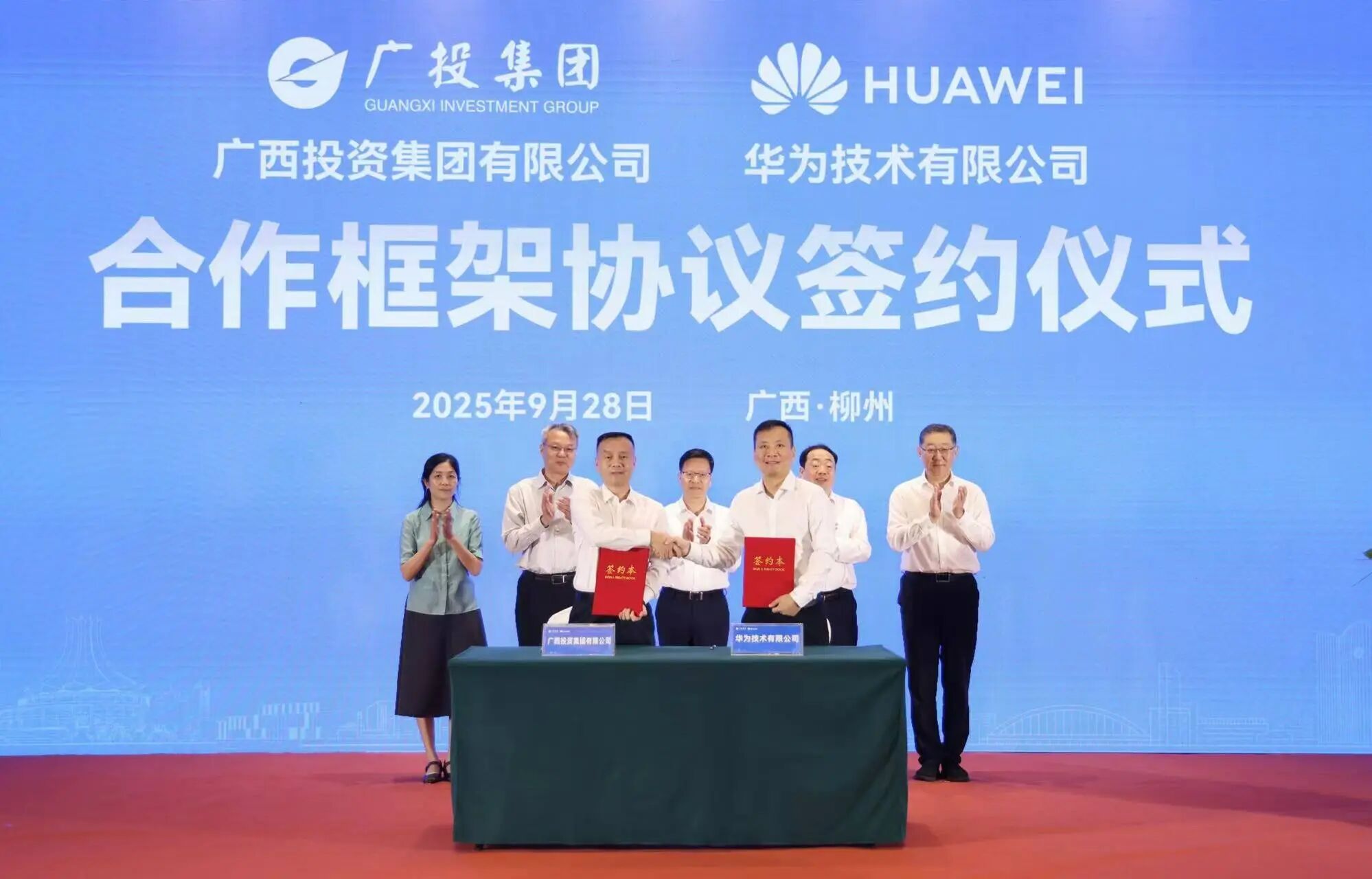 9月28日,广投集团与华为公司在广西工业重镇柳州签署合作框架协议。自治区党委常委、统战部部长,柳州市委书记谭丕创,华为公司高级副总裁、政务一网通军团长杨瑞凯,广投集团党委书记、董事长周炼,柳州市委副书记、市长张壮,自治区科技厅二级巡视员莫冰云出席并见证签约。广投集团党委副书记、副董事长、总经理刘明洪,华为公司广西总经理梁涛代表双方签约。